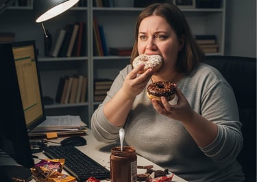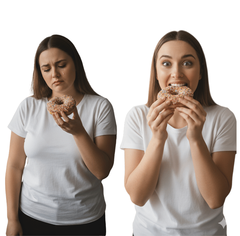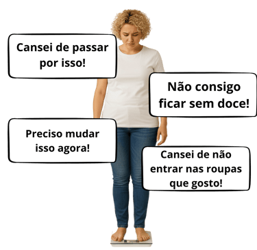Nenhuma evolução na balança, muita frutração ao tentar emagrecer e cair em fast food quando fica nervosa ou de TPM.